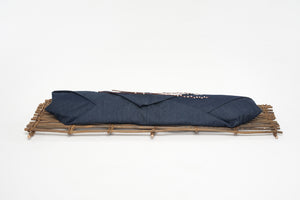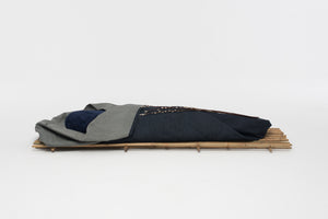 Een stugge denim-wade gemaakt van 63% hennep en 37% biologische katoen.